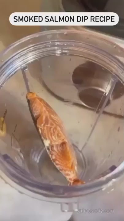 4 Combine all ingredients in a food processor or blender. Break up wild Alaskan smoked salmon fillet into 5 or so pieces when put into the mix.