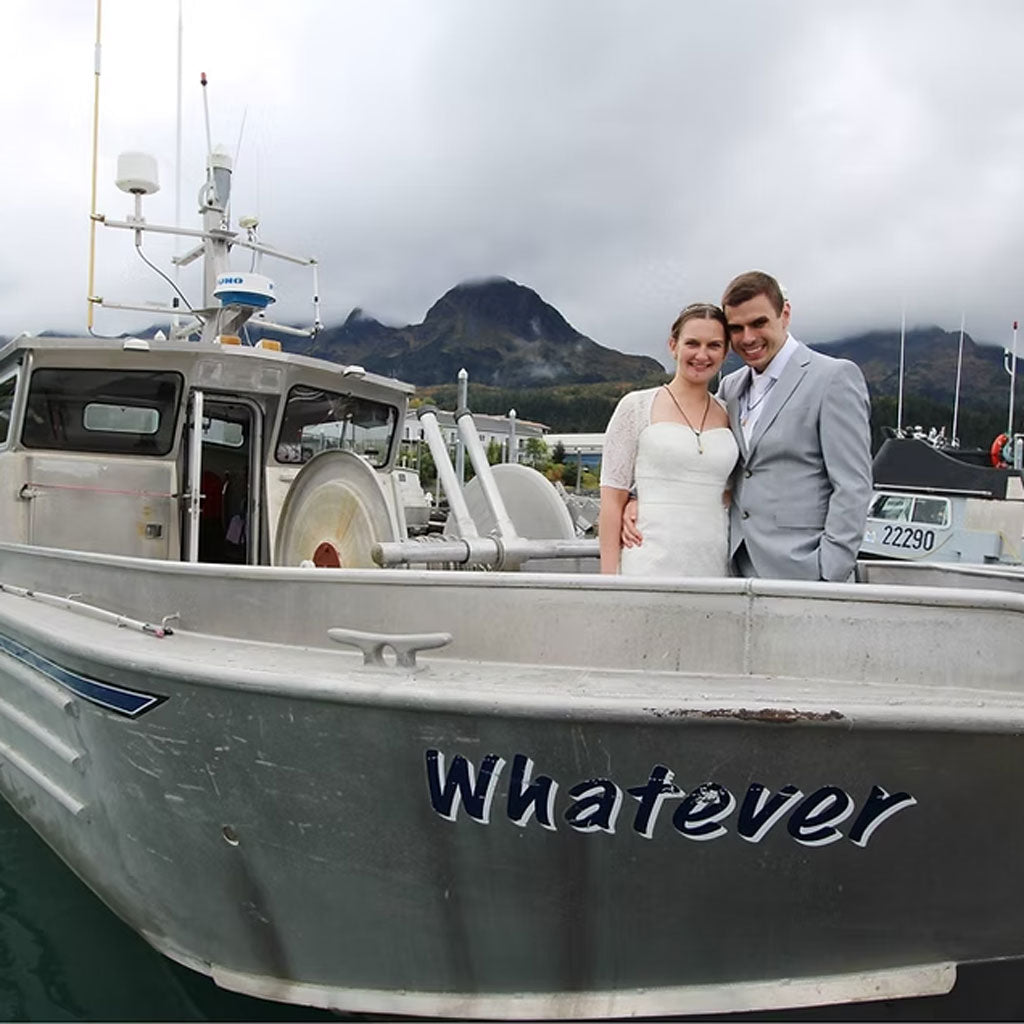 Adra and Juro get married in Alaska by Captain Pip on his boat, the Whatever.