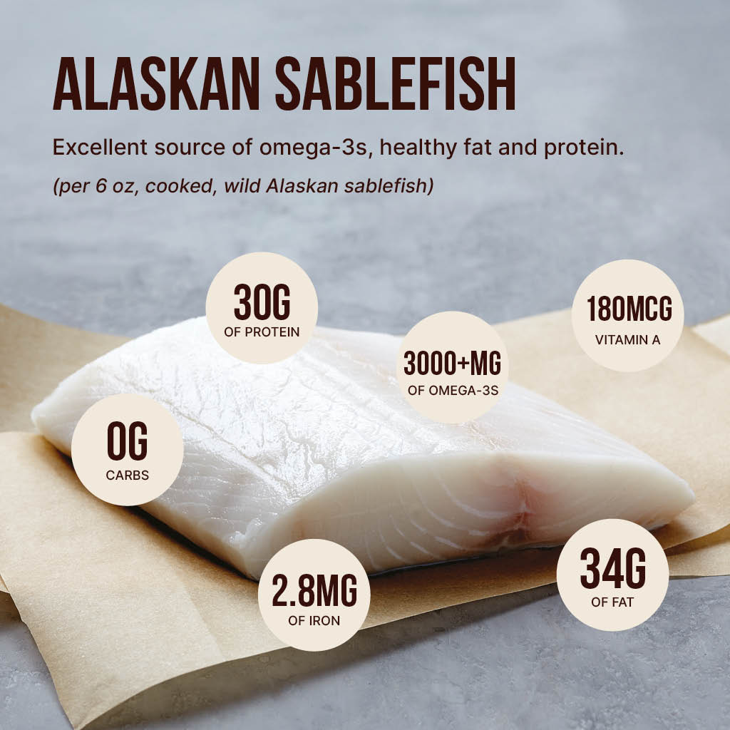 Omega-3s are one of the main reasons people want to add seafood to their diet and wild Alaskan sablefish has more of them than almost any other fish! This underrated delicacy, also known as black cod, has flaky meat and smooth, buttery texture with a hint of sweetness that reminds you of crab legs.