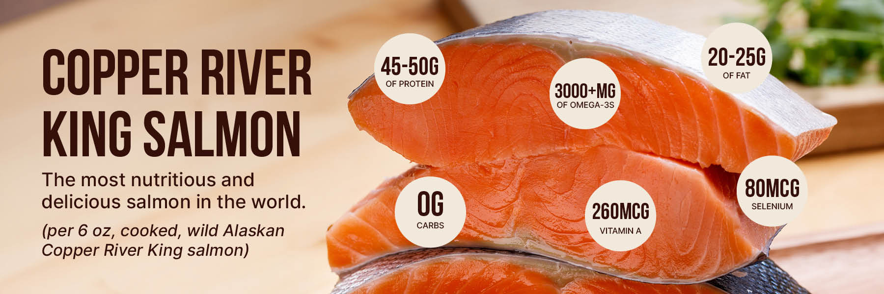 Copper River King Salmon is packed with important nutrients like omega-3 fatty acids, which are crucial for your health. They can help reduce swelling, keep your heart healthy, and improve brain function.